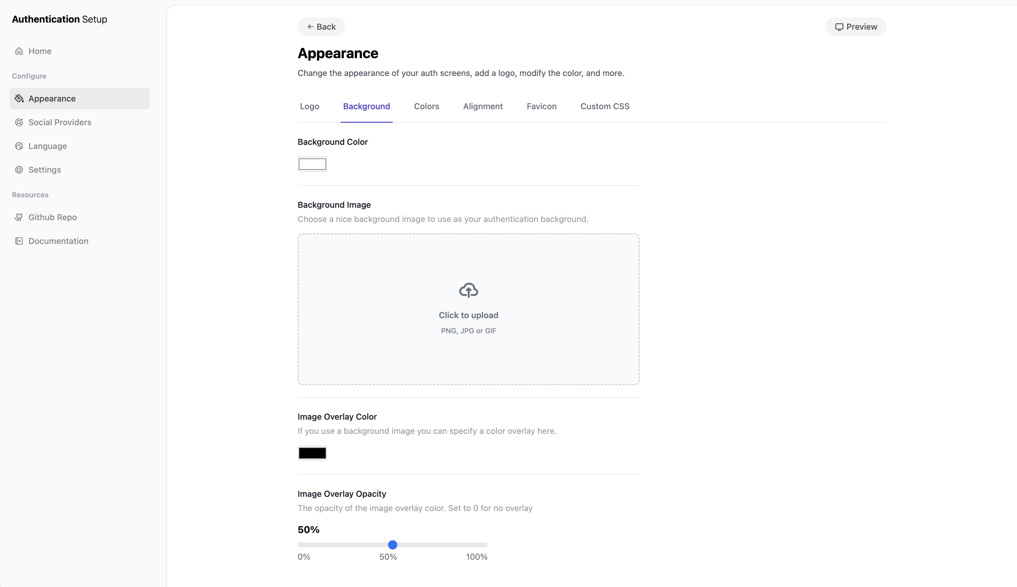 - Appearance - Modify the logo, background, colors, and more.